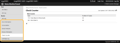 За допомогою Remote UI (Інтерфейс віддаленого користувача) можна перевірити стан документів, які очікують на обробку, а також переглянути журнали оброблених документів. Ви також можете переглянути відомості про стан апарата, як-от інформація про помилки та залишкову кількість витратних матеріалів.