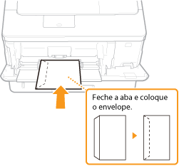 Esta secção descreve como colocar envelopes com a orientação correta, além de procedimentos que é necessário efetuar antes de colocar envelopes. Para ver uma descrição do procedimento geral de colocação de envelopes no tabuleiro multifunções, consulte Método básico de colocação de papel.