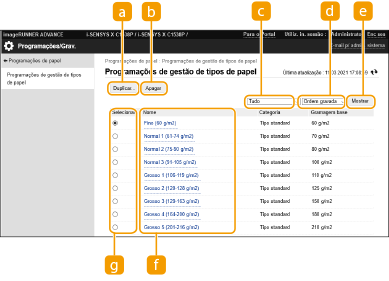[Programações de gestão de tipos de papel].