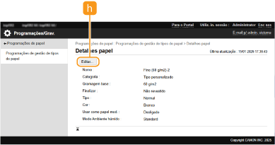 É necessário iniciar sessão como administrador para registar tipos de papel personalizados, ou alterar as programações de tipos de papel personalizados. Iniciar sessão na máquina