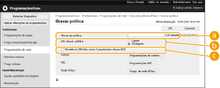selecione [Desligado] para [Ativ./desat. política] clique em [OK].Para apagar uma política, selecione-a na lista