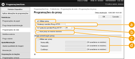 Selecione a caixa de verificação [Utilizar proxy] e especifique as definições necessárias.
