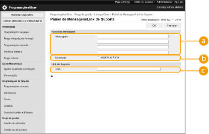 Insira o link para informação de suporte da máquina a ser exibida na página do portal da Remote UI (Interface Remota).