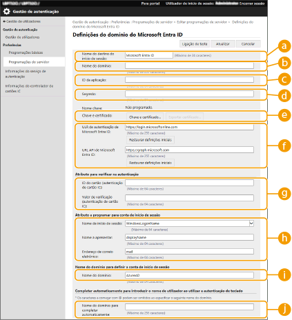 Clique em [Restaurar definições iniciais] para restaurar o URL de [ULR de autenticação de Microsoft Entra ID] / [URL API de Microsoft Entra ID] para o valor padrão. Valor padrão: