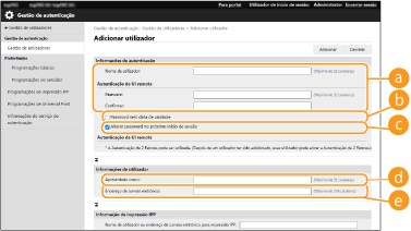 Gravar a ID de departamento como o nome de utilizadorSe clicar em [Adicionar utilizador usando ID de departamento...] no ecrã no passo 4, é gravado um utilizador novo com um nome igual à ID do departamento. Se for utilizada a autenticação com teclado, a autenticação só pode ser efetuada utilizando a introdução com teclas numéricas.