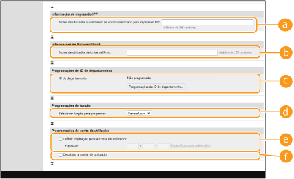 Se o nome de utilizador e a password não satisfizerem as condições descritas acima, é automaticamente atribuída uma ID de departamento a partir de 0000001 e o PIN é programado como 0 (nenhum).