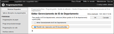 Selecione esta caixa de verificação para aceitar trabalhos de impressão de controladores de impressoras que não suportam a Gestão de ID do Departamento.