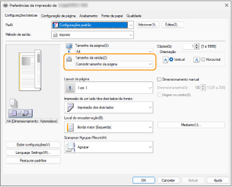 Faça corresponder o [Formato impressão] no controlador de impressora ao formato do papel em que pretende imprimir.