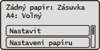 Když otevřete zásuvku na papír, v horní části obrazovky se zobrazí aktuální nastavení papíru.