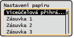 Pokud je položka <Potvrdit při vkládání papíru do zásuvky> nastavena na <Zap>, po vložení zásuvky na papír do zařízení se otevře obrazovka s výzvou, aby uživatel zkontroloval nastavení papíru.