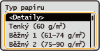 Chcete-li zkontrolovat podrobná nastavení určitého typu papíru, vyberte <Detaily>
