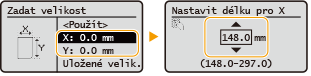 Vyberte možnost <X> nebo <Y> a zadejte délku jednotlivých stran pomocí číselných tlačítek nebo tlačítek  /  .