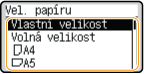 Pokud potřebujete vkládaný papír často měnit, vyberte možnost <Volná velikost>; zjednodušíte tak postup, který se provádí při každé změně nastavení. Když je velikost papíru nastavená v ovladači tiskárny výrazně odlišná od velikosti skutečně vkládaného papíru, můžete také nastavit, aby se zobrazilo chybové hlášení.