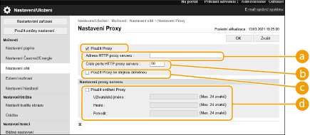 Zaškrtněte políčko [Použít Proxy] a zadejte požadovaná nastavení.