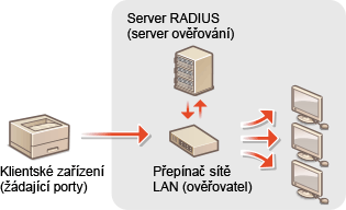 Jestliže se zařízení pokusí připojit a spustit komunikaci na síti 802.1X, musí projít procesem ověření uživatele, který prokáže, zda se o připojení pokouší oprávněný uživatel. Informace pro ověření jsou odeslány ke kontrole na server RADIUS, který na základě výsledku ověření buď povolí, nebo odmítne komunikaci se sítí. Pokud se ověření nezdaří, přepínač LAN (nebo přístupový bod) zablokuje přístup z vnější sítě. Zařízení se může k síti 802.1X připojit jako klientské zařízení.