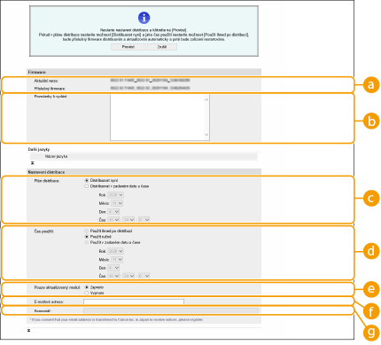 Opětovné změnění distribuovaných nastavení aktualizace může stažený firmware smazat nebo zrušit časová nastavení.