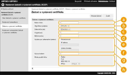 [Nastavení pro žádost o vydání certifikátu (SCEP)]