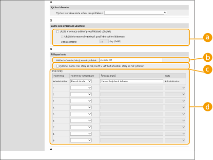 Vyberte, jak nastavit jméno domény místa určení pro přihlášení. Chcete-li zadat jméno domény přímo, vyberte [Zadat název domény] a zadejte jméno domény. Chcete-li zadat datové pole LDAP (název atributu), z něhož se má získat jméno domény na serveru LDAP, vyberte [Zadat název atributu pro získání jména domény] a zadejte název atributu (Příklad: dc).