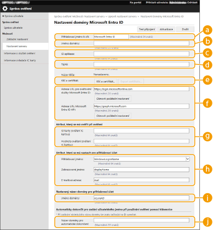Kliknutím na [Obnovit počáteční nastavení] obnovte adresu URL [Adresa URL pro ověřování služby Microsoft Entra ID] / [Adresa URL Microsoft Entra ID API] na výchozí hodnotu. Výchozí hodnota: