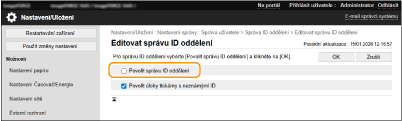 Správa ID oddělení je platná pouze pro uživatele, kteří jsou uloženi na místním zařízení.