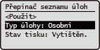 Vyberte dokument v části <Typ úlohy> na obrazovce <Přepínač seznamu úloh>.