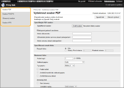 S pomocí Remote UI (Vzdálené UR) lze tisknout soubory uložené v počítači nebo na síti přímo ze stroje bez použití ovladače tiskárny. Pro tisk nemusíte otvírat soubory v počítači.