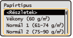 A papírtípusokhoz társított részletes beállítások ellenőrzéséhez válassza a <Részletek> lehetőséget