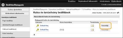 Ha saját készítésű kulcsot és tanúsítványt kíván használni, akkor még az alábbi műveletek elvégzése előtt állítsa elő a kulcsot és tanúsítványt. Kulcs és tanúsítvány generálása a hálózati kommunikációhoz