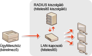 Ha egy készülék 802.1X szabványú hálózathoz próbál csatlakozni és kommunikációt kezdeményezni, felhasználói hitelesítési lépéseken keresztül bizonyítania kell, hogy a kapcsolatot jogosult felhasználó hozta létre. A hitelesítési adatokat egy RADIUS-szerverre küldik, amely ellenőrzi azokat, majd a hitelesítés eredményétől függően engedélyezi vagy elutasítja a hálózati kommunikációt. Ha a hitelesítés sikertelen, akkor egy LAN-kapcsoló (vagy hozzáférési pont) blokkolja a hozzáférést a hálózaton kívülről. A készülék ügyféleszközként csatlakoztatható a 802.1X szabványú hálózatokra.