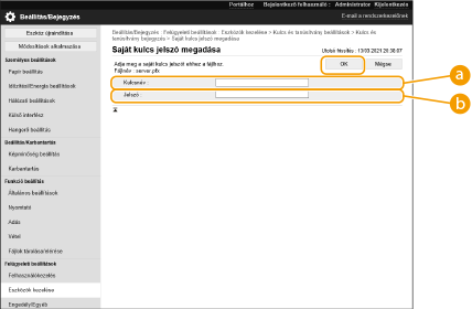 Írja be a kulcsnevet és a jelszót, majd kattintson az [OK] lehetőségre.