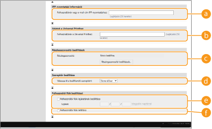 [Beállítások a Universal Printhez] engedélyezve van, akkor megadhatja a felhasználó univerzális nyomtatási feladatokhoz rendelt Microsoft 365-fiókjának e-mail-címét vagy telefonszámát.