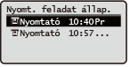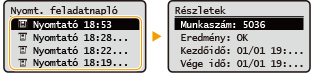válassza ki a dokumentumot, amelynek az előzményeit ellenőrizni szeretné.Ha a dokumentum nyomtatása sikeres volt, akkor az <OK> felirat jelenik meg, ha viszont megszakítás vagy valamilyen hiba miatt sikertelen volt, akkor a <Hiba> jelzés látható.