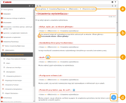 Kliknij, aby określić ustawienia, takie jak rozmiar tekstu, układ i metoda wyświetlania dla Podręcznik użytkownika.