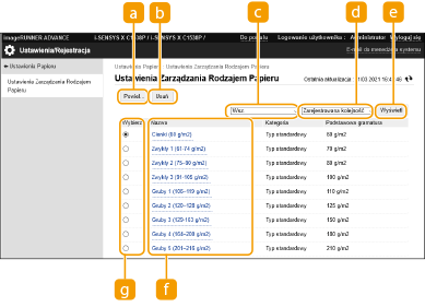 Kiedy zostaną zarejestrowane ustawienia dla niestandardowego rodzaju papieru, należy pamiętać o zmianie nazwy. Nie można zmienić domyślnych ustawień rodzajów papieru zarejestrowanych w urządzeniu.