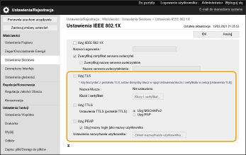 Wybierz [Użyj IEEE 802.1X] i skonfiguruj wymagane ustawienia.