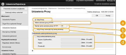 Zaznacz pole wyboru [Użyj Proxy] i podaj wymagane ustawienia.