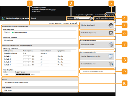 Podczas korzystania z interfejsu Remote UI (Zdalny interfejs użytkownika) do obsługi urządzenia, nie należy korzystać z przycisku [Powrót] przeglądarki. Jeżeli skorzystasz z przycisku [Powrót] strona może być zmieniana nieprawidłowo.