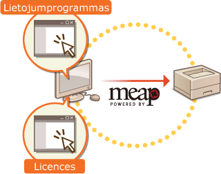 Lietotājs var instalēt MEAP programmas un konfigurēt nepieciešamos iestatījumus, lai varētu izmantot MEAP programmas.