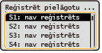 Izvēlieties kādu no <S1> līdz <S5> pogām
