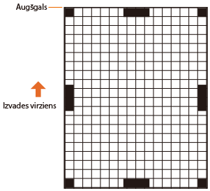 Izvades papīra vadošā mala ir parauga izdrukas augšējā mala. Paņemot papīru, atcerieties, kura mala ir augšējā mala.