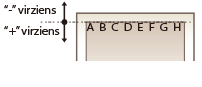 Drukas pozīcijas regulēšana ir nepieciešama, ja atzīmes, kas paredzētas drukas pozīcijas apstiprināšanai, ir novirzītas sāņus. Drukas pozīcijas virzienu var norādīt, izmantojot pozitīvo vērtību (+) vai negatīvo vērtību (-), un attālumu var norādīt milimetros. Lai veiktu vertikālu pielāgošanu, iestatiet negatīvu vērtību (-), lai pārvietotu drukas pozīciju uz augšu, vai pozitīvu vērtību (+), lai pārvietotu drukas pozīciju uz leju. Lai veiktu horizontālu pielāgošanu, iestatiet negatīvu vērtību (-), lai pārvietotu drukas pozīciju uz pa kreisi, vai pozitīvu vērtību (+), lai pārvietotu drukas pozīciju pa labi.