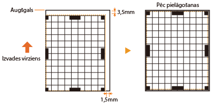 Drukāšanas pozīciju var pielāgot, ja drukāšana iesķība vai ārpus drukas diapazona. Drukas pozīciju var pielāgot katram papīra avotam.