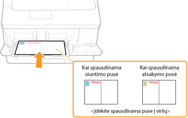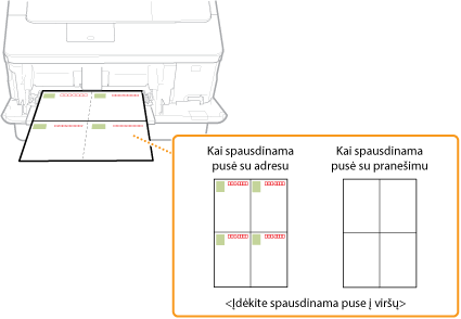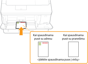 Įdėkite atviruką spausdinama puse į viršų ir trumpuoju kraštu link aparato, jei atvirukas yra įprasto tipo arba 4 ant 1, arba ilguoju kraštu link aparato, jei atvirukas yra atsakymo tipo.