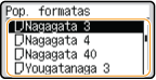 Užregistravus dažnai naudojamus popieriaus formatus kaip mygtukus <S1>–<S5>, juos galima iškviesti pasirinkus <Įregistravimo dydžiai>.Nestandartinio formato (pasirinktinio formato) popieriaus registravimas