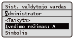 arba pasirinkite <Simbolis> ir paspauskite , jei įvesto teksto tipas yra <A> arba <a> – ekrane matysite galimus įvesti simbolius. Naudodami / / / pasirinkite norimą naikinti simbolį ir paspauskite . |