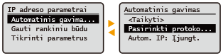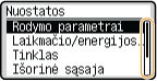 Galite keisti įvairius su ekranu susijusius parametrus, pavyzdžiui, ekrano kalbą: <Rodymo parametrai>