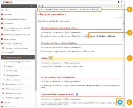 Spustelėkite, kad pereitumėte į atitinkamą puslapį. Norėdami grįžti į ankstesnį puslapį, interneto naršyklėje spustelėkite „Atgal“.