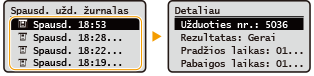 pasirinkite dokumentą, kurio istoriją norite patikrinti.Sėkmingai išspausdinus dokumentą, rodoma <Gerai>, o jei dokumento nepavyko išspausdinti, nes jis buvo atšauktas arba įvyko klaida, rodoma <Error>.