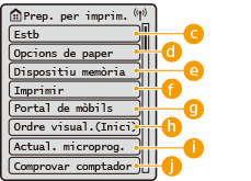 <Opcions de funcions>, <Preferències> i molts altres ajusts de l'equip es fan des d'aquest botó.