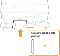 Zarfı, resimde gösterildiği gibi kapaklı kenarı sol tarafa doğru gelecek şekilde yükleyin.